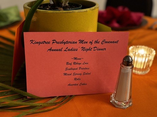 The men of Kingstree Presbyterian Church annually host a special Ladies’ Night, thoughtfully prepared as an expression of gratitude and care for the women of our congregation.